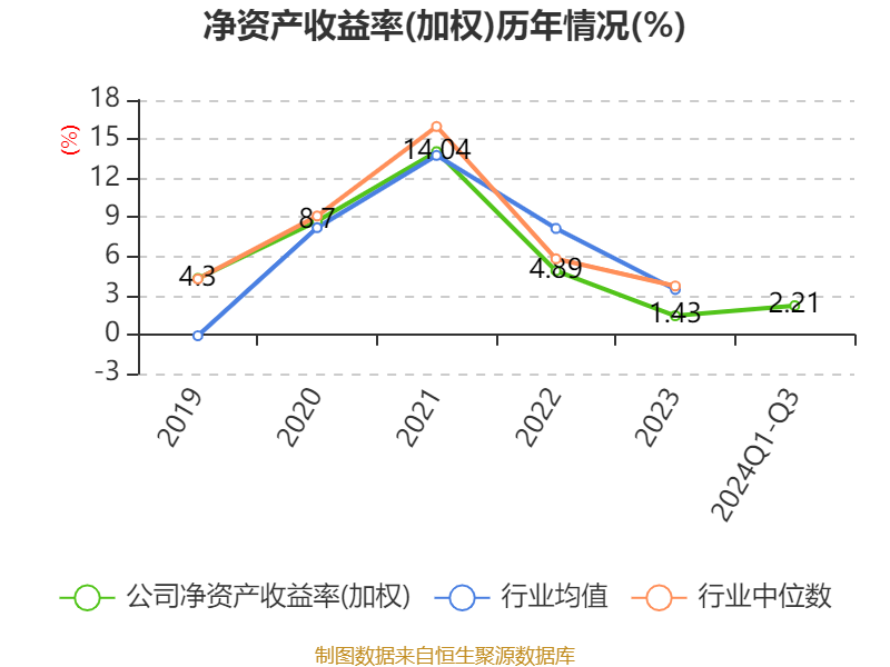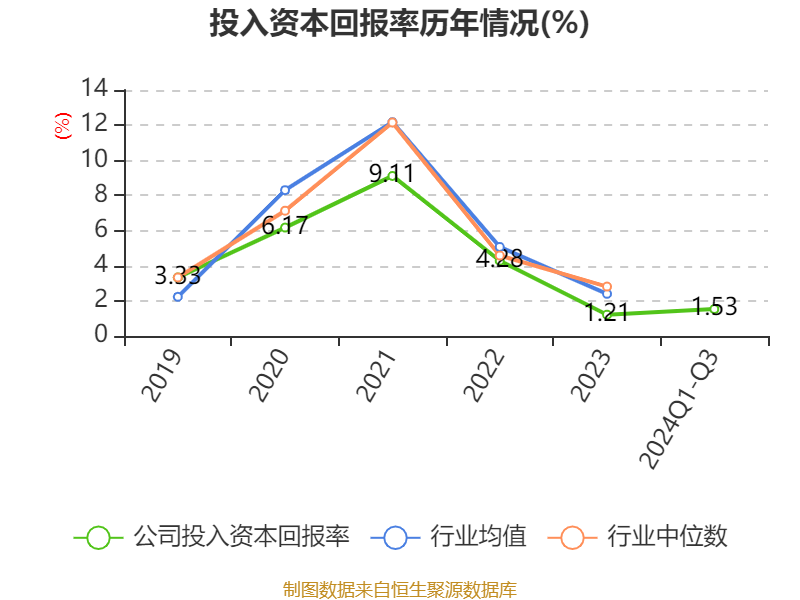 盈利能力方面, 2024年前三季度公司加权平均净资产收益率为2.21%,同比上升1.69个百分点。公司2024年前三季度投入资本回报率为1.53%,较上年同期上升0.99个百分点。