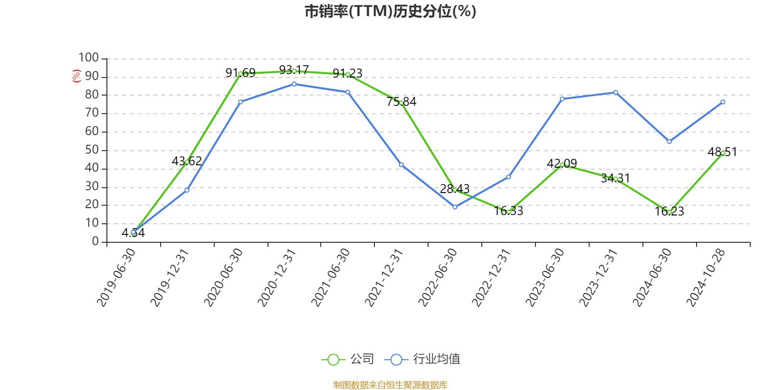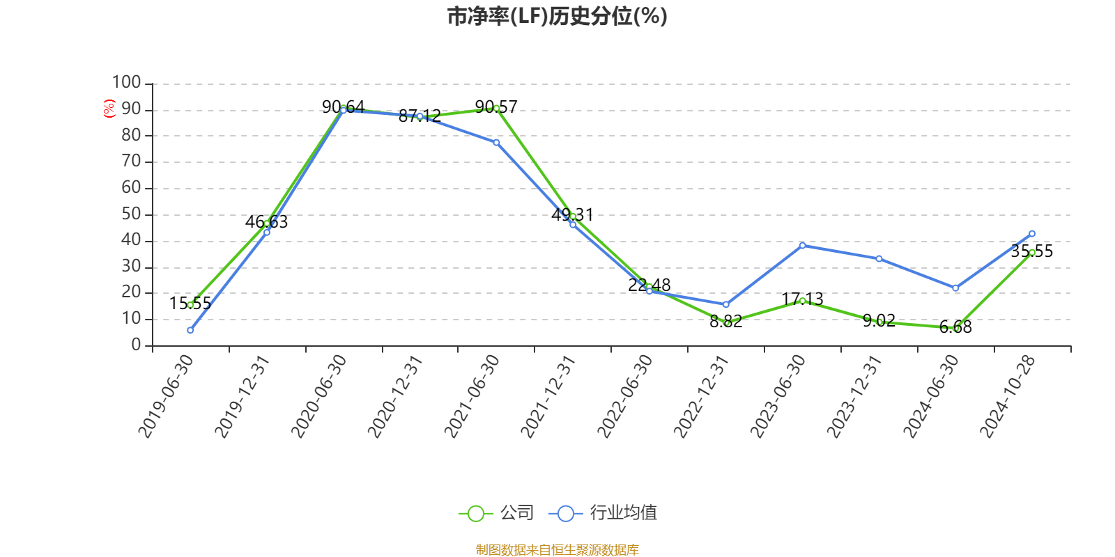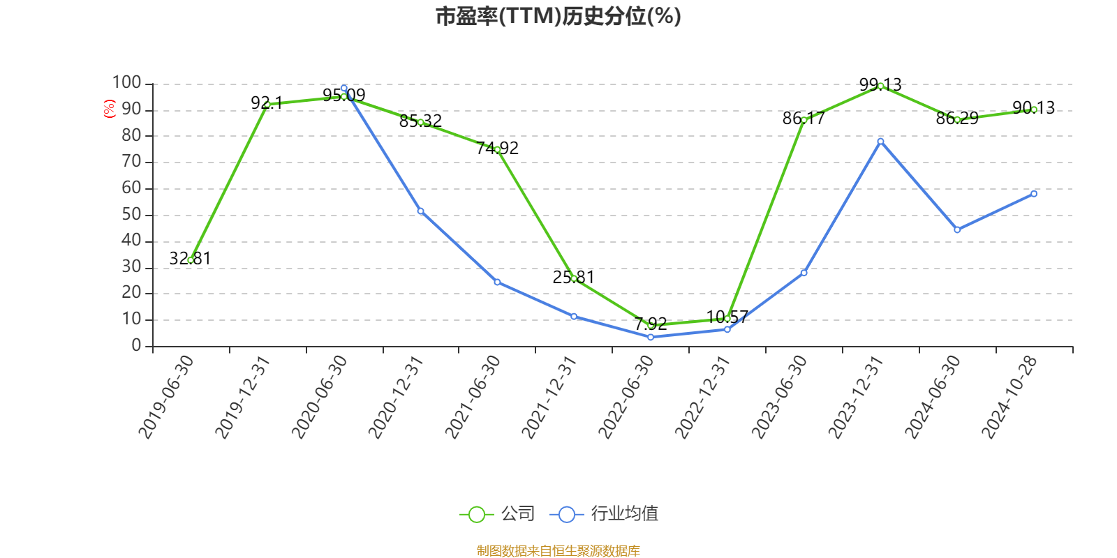 市盈率、市净率为负时,不显示当期分位数,会导致折线图中断。