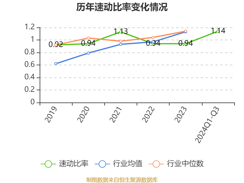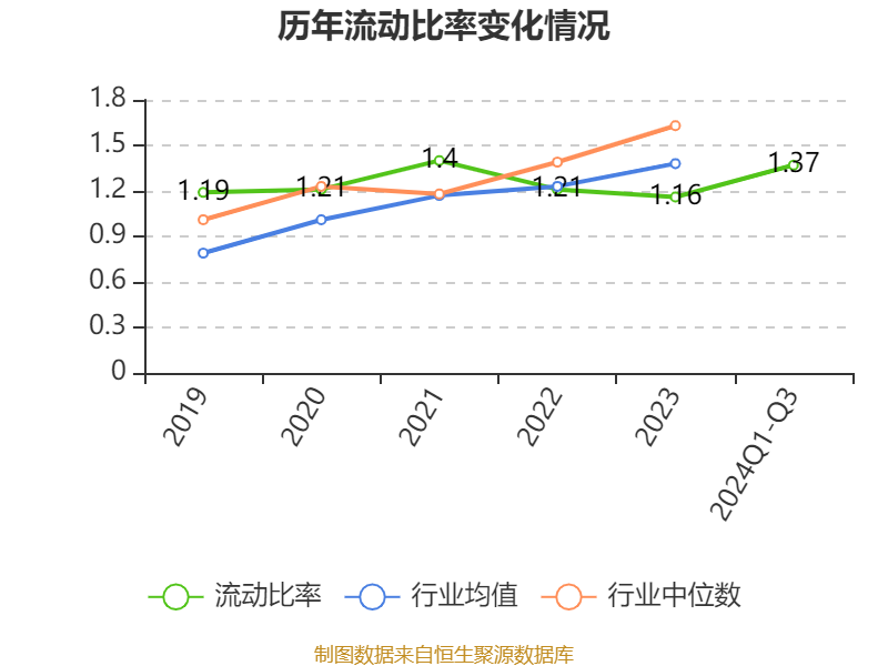 2024年前三季度,公司流动比率为1.37,速动比率为1.14。