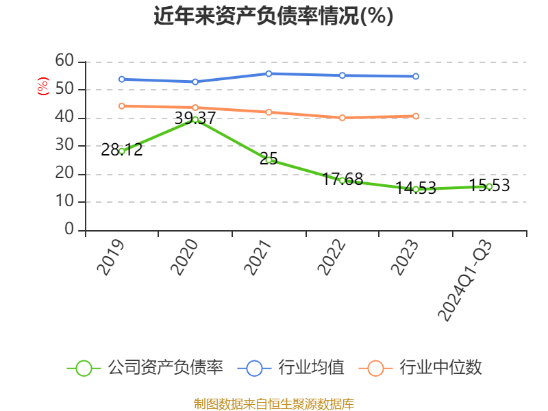 2024年前三季度,公司流动比率为4.46,速动比率为4.41。