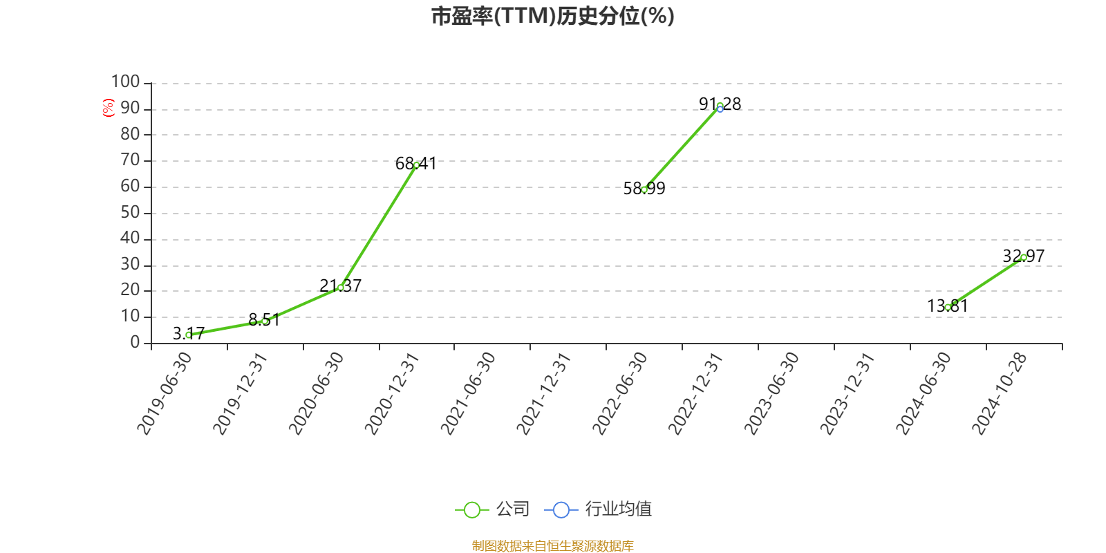 市盈率、市净率为负时,不显示当期分位数,会导致折线图中断。