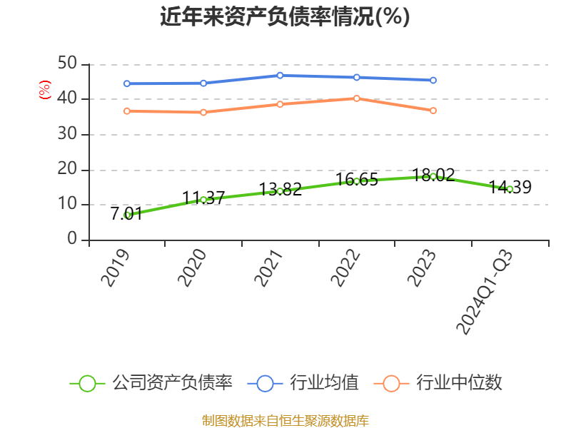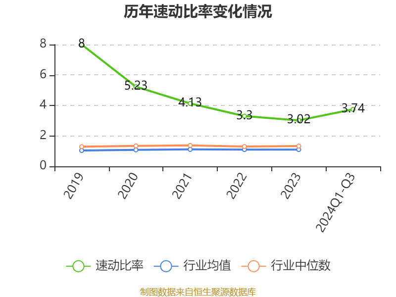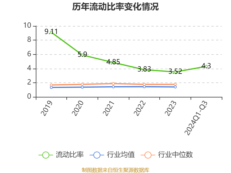 2024年前三季度,公司流动比率为4.3,速动比率为3.74。