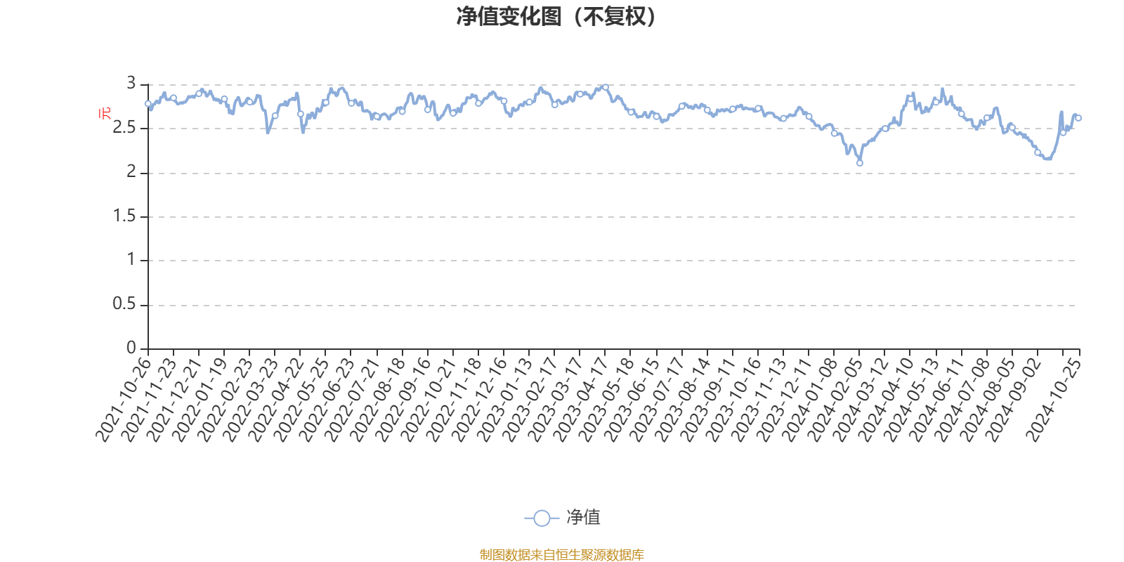 该基金属于偏股混合型基金,长期投资于周期股票。截至10月25日,单位净值为2.618元。基金经理是刘辉和王利刚,目前共同管理3只基金近一年均为负收益。其中,截至10月25日,银华内需精选混合(LOF)近一年复权单位净值增长率最高,达-2.093%;银华创业板两年定期开放混合最低,为-5.623%。