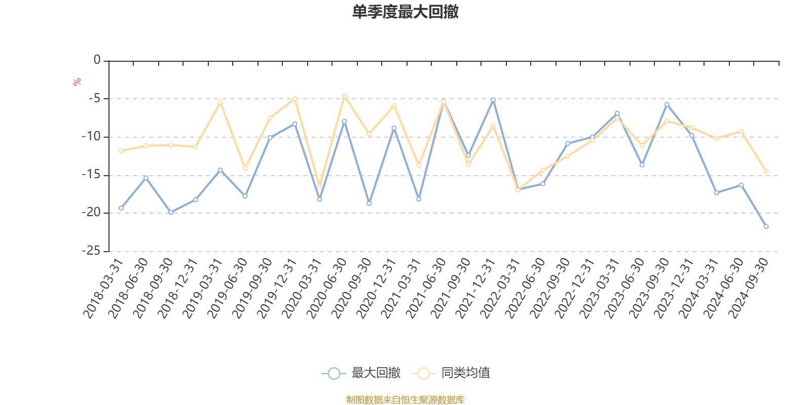 截至10月25日,基金近三年最大回撤为29.15%,同类可比基金排名37/59。其中,单季度最大回撤出现在2024年三季度,为21.73%。