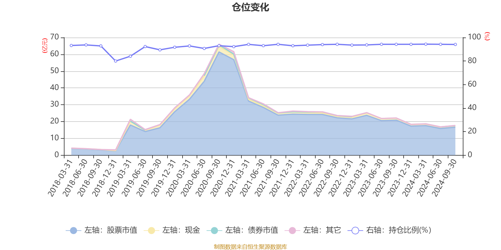 据定期报告数据统计,近三年平均股票仓位为93.94%,同类平均为83.64%。2024年一季度末基金达到94.35%的最高仓位,2018年末最低,为80%。