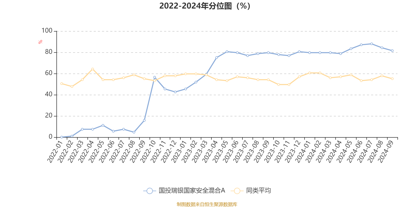 通过所选区间该基金净值增长率分位图,可以观察该基金与同类基金业绩比较情况。图为坐标原点到区间内某时点的净值增长率在同类基金中的分位数。