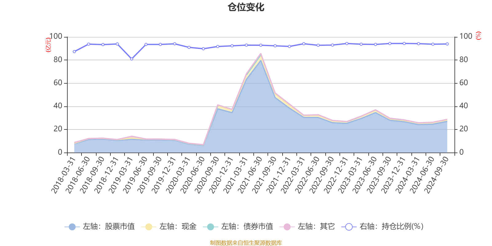 据定期报告数据统计,近三年平均股票仓位为93.62%,同类平均为86.15%。2023年末基金达到94.34%的最高仓位,2019年一季度末最低,为80.96%。