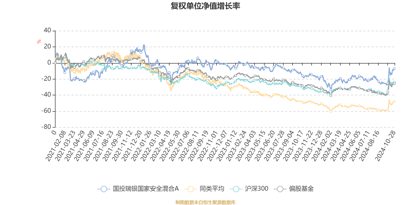 截至10月28日,国投瑞银国家安全混合A近三个月复权单位净值增长率为13.63%,位于同类可比基金140/182;近半年复权单位净值增长率为16.04%,位于同类可比基金60/180;近一年复权单位净值增长率为10.86%,位于同类可比基金35/169;近三年复权单位净值增长率为-6.15%,位于同类可比基金2/100。