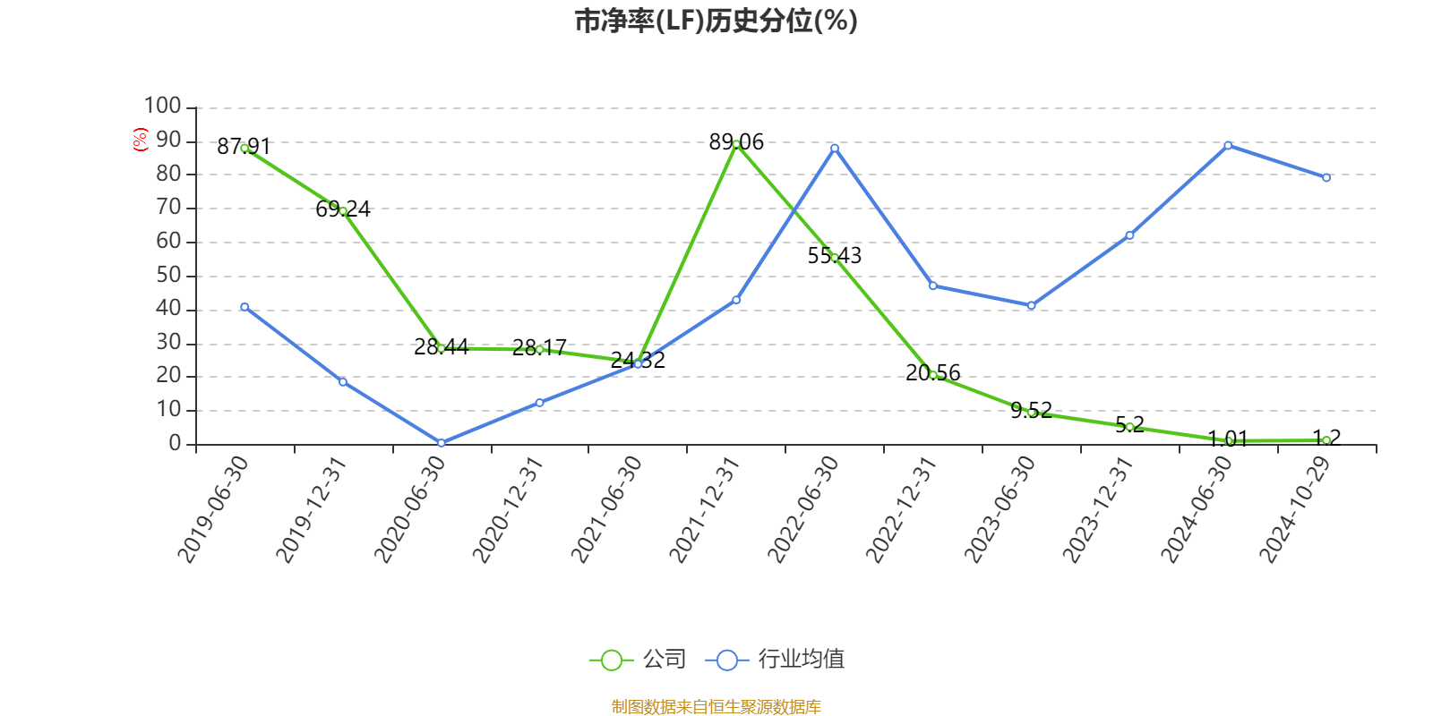 市盈率、市净率为负时,不显示当期分位数,会导致折线图中断。