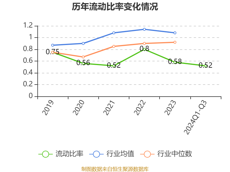 2024年前三季度,公司流动比率为0.52,速动比率为0.45。