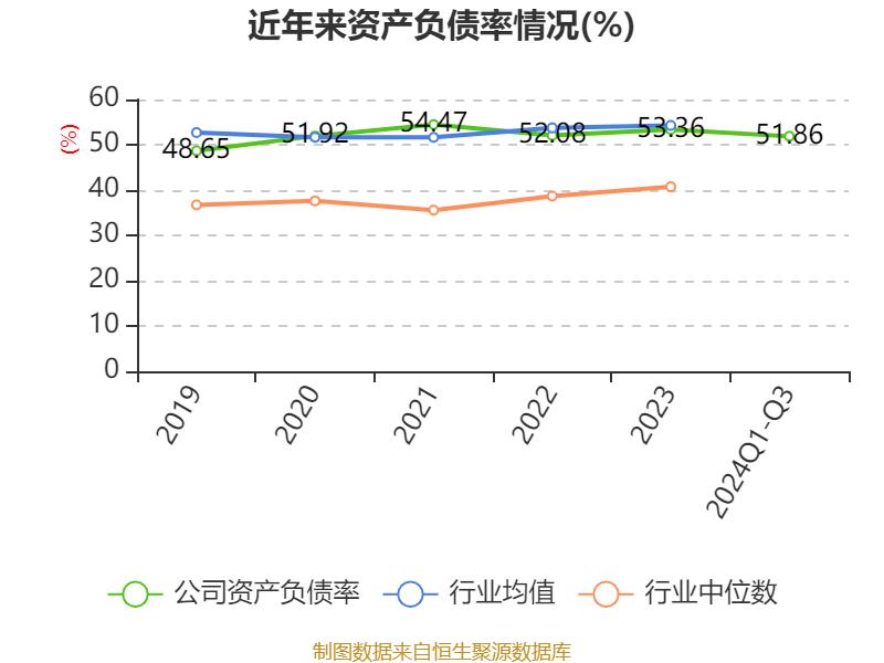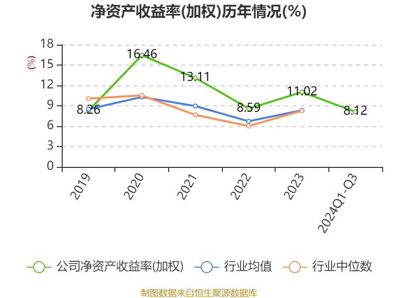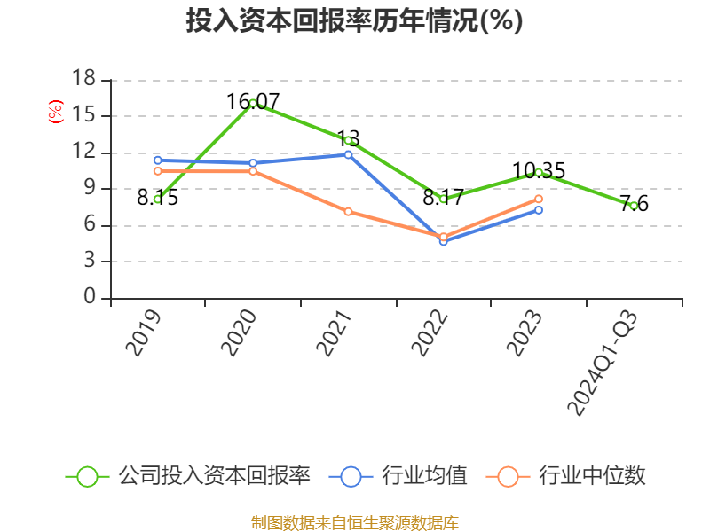 盈利能力方面, 2024年前三季度公司加权平均净资产收益率为8.12%,同比下降2.45个百分点。公司2024年前三季度投入资本回报率为7.6%,较上年同期下降2.54个百分点。