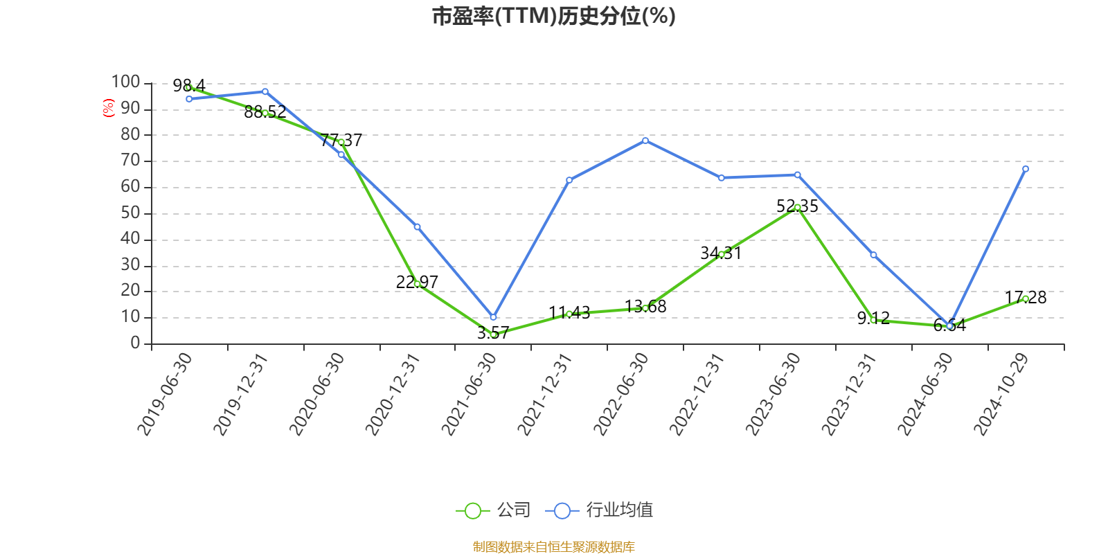 市盈率、市净率为负时,不显示当期分位数,会导致折线图中断。
