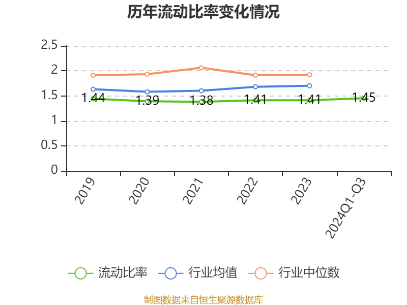 2024年前三季度,公司流动比率为1.45,速动比率为1.1。