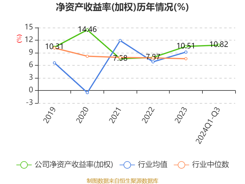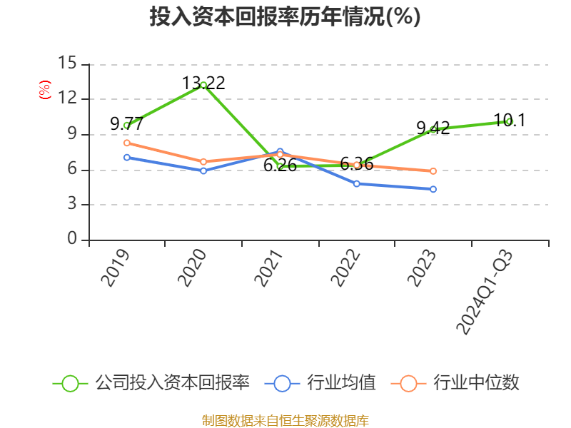 盈利能力方面, 2024年前三季度公司加权平均净资产收益率为10.82%,同比上升0.34个百分点。公司2024年前三季度投入资本回报率为10.1%,较上年同期上升0.46个百分点。