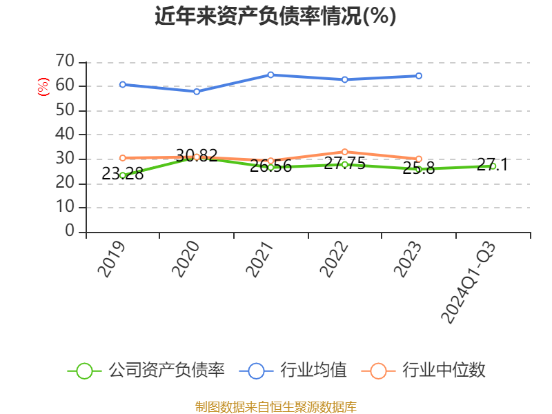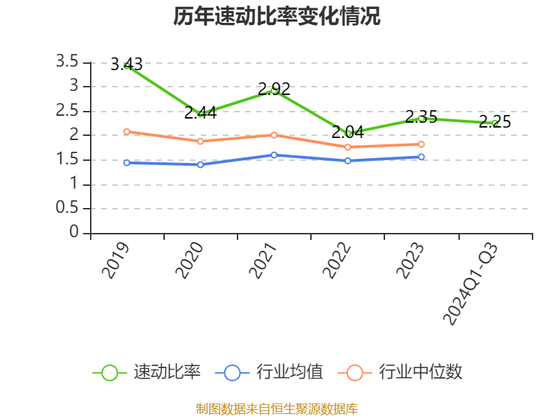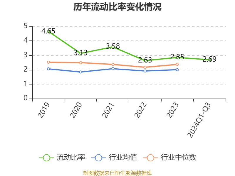 2024年前三季度,公司流动比率为2.69,速动比率为2.25。