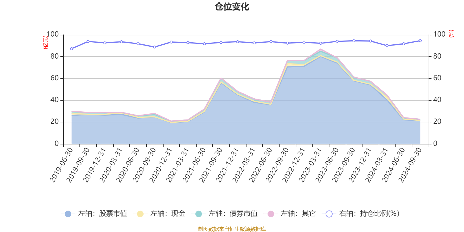 据定期报告数据统计,近三年平均股票仓位为93.08%,同类平均为88.67%。2024年三季度末基金达到94.6%的最高仓位,2019年上半年末最低,为87.24%。