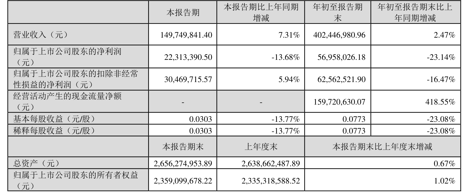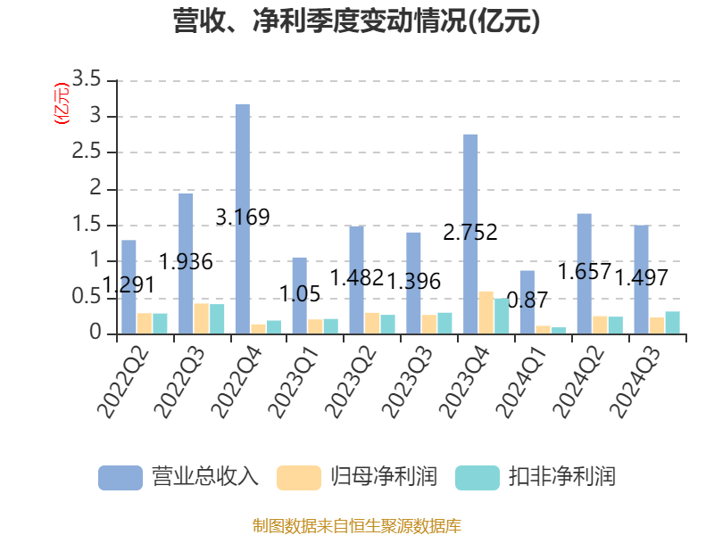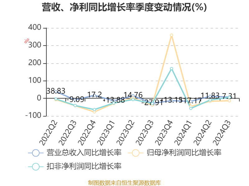 2024年前三季度,公司经营活动现金流净额为1.6亿元,同比增长418.55%;筹资活动现金流净额-3196.83万元,同比增加1.65亿元;投资活动现金流净额-1258.36万元,上年同期为-8290.04万元。