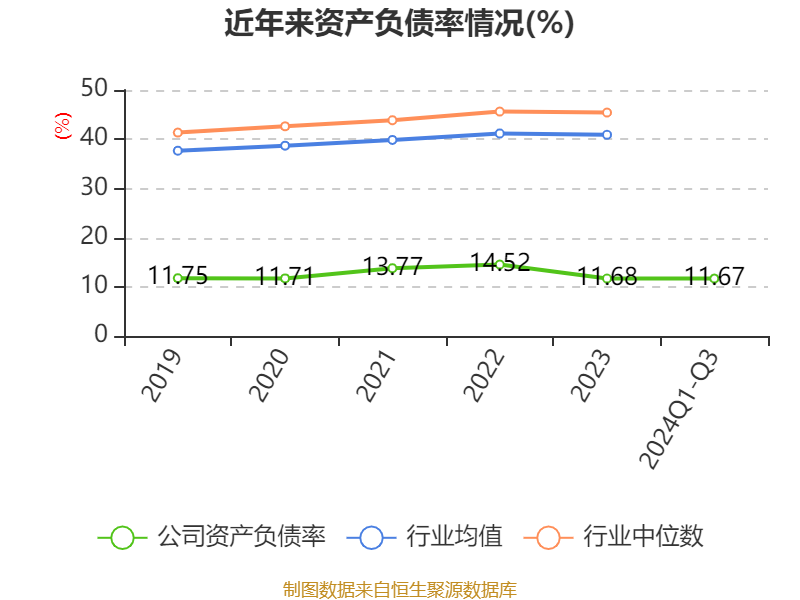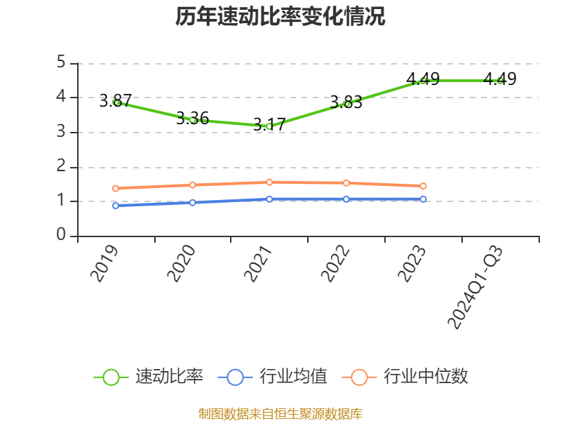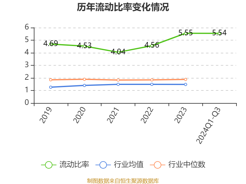 2024年前三季度,公司流动比率为5.54,速动比率为4.49。