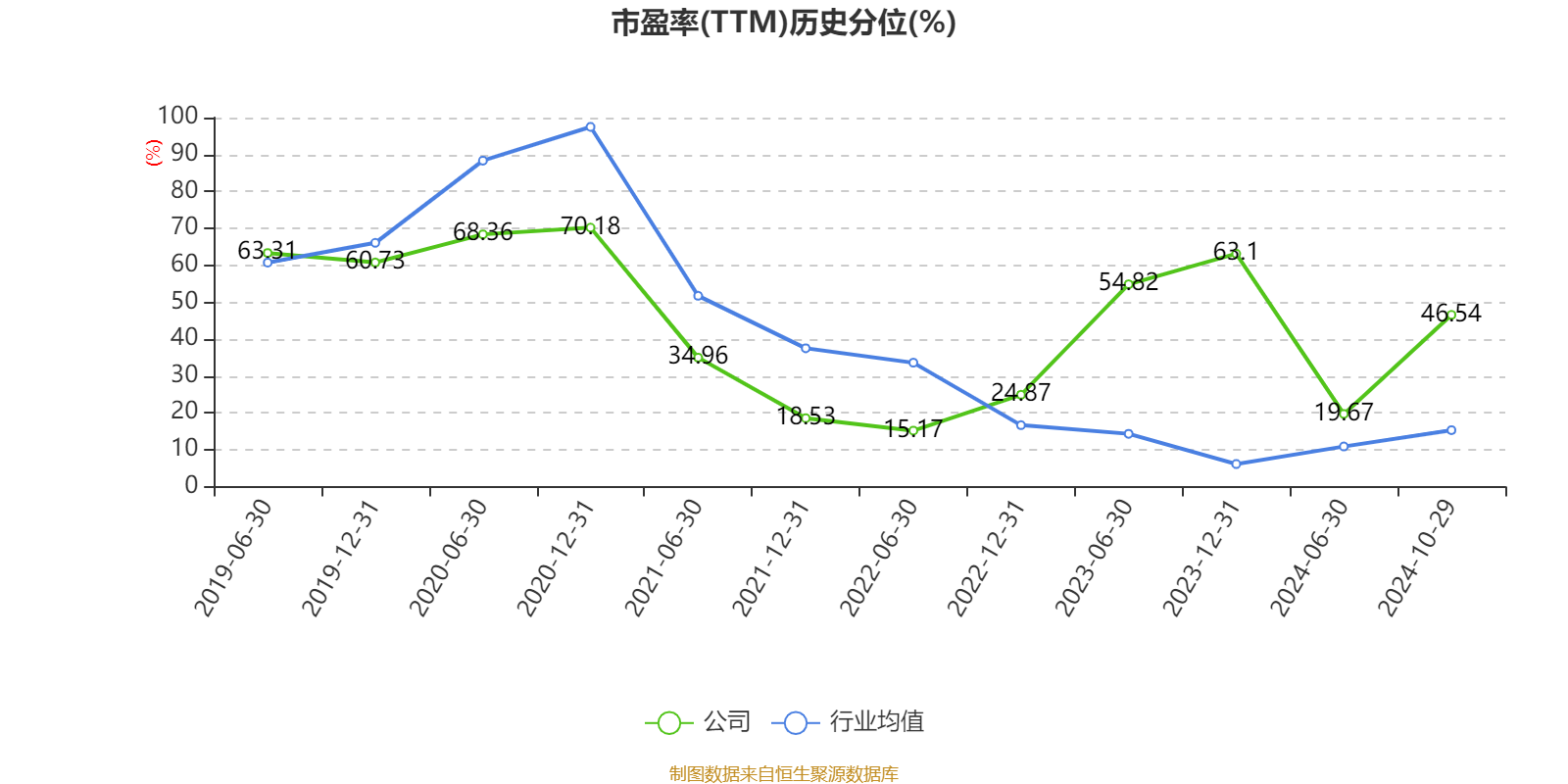 市盈率、市净率为负时,不显示当期分位数,会导致折线图中断。