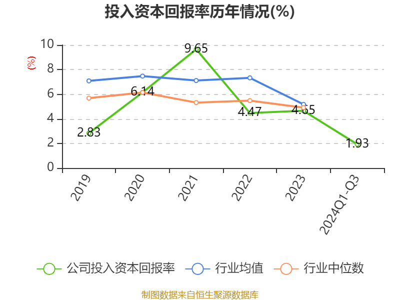 公司2024年前三季度投入资本回报率为1.93%,较上年同期下降0.67个百分点。