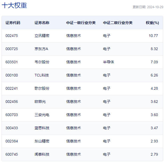 中证虚拟现实主题指数主要权重股
