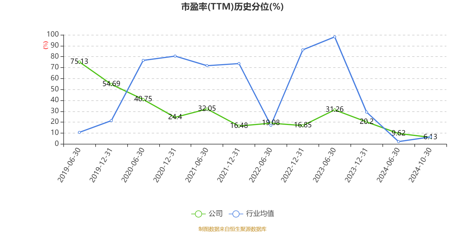 市盈率、市净率为负时,不显示当期分位数,会导致折线图中断。