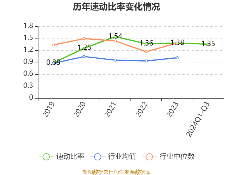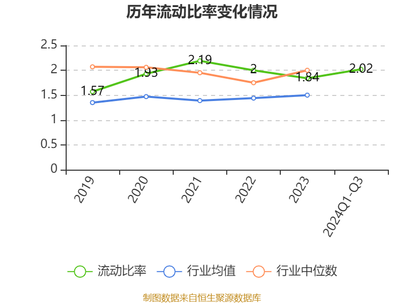 2024年前三季度,公司流动比率为2.02,速动比率为1.35。