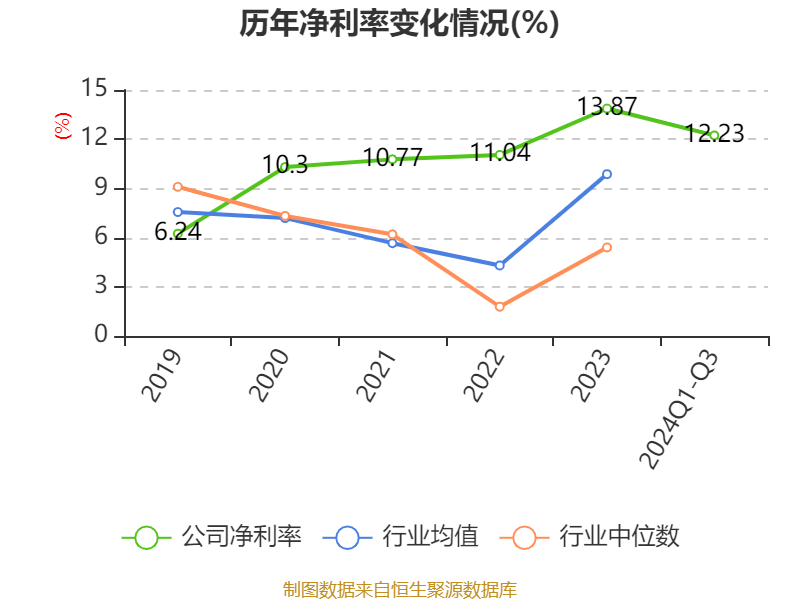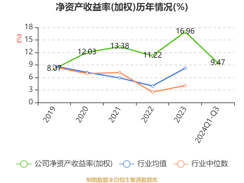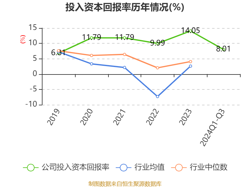 盈利能力方面, 2024年前三季度公司加权平均净资产收益率为9.47%,同比下降4.13个百分点。公司2024年前三季度投入资本回报率为8.01%,较上年同期下降3.45个百分点。