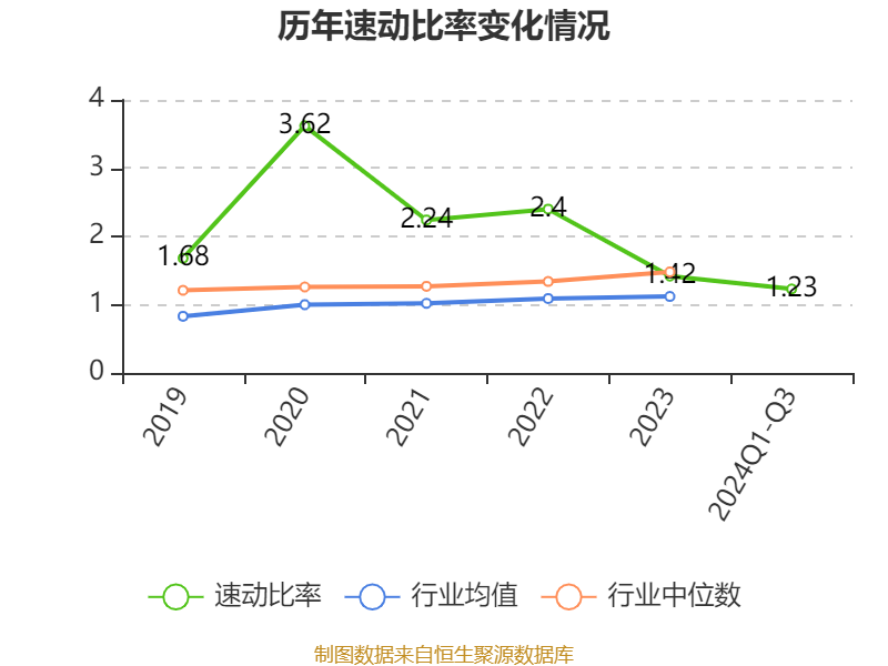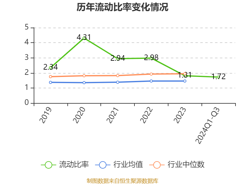 2024年前三季度,公司流动比率为1.72,速动比率为1.23。