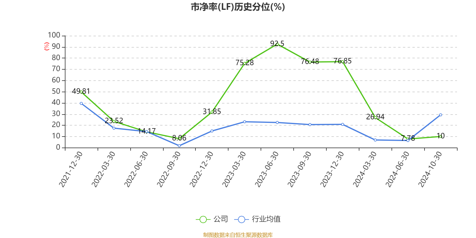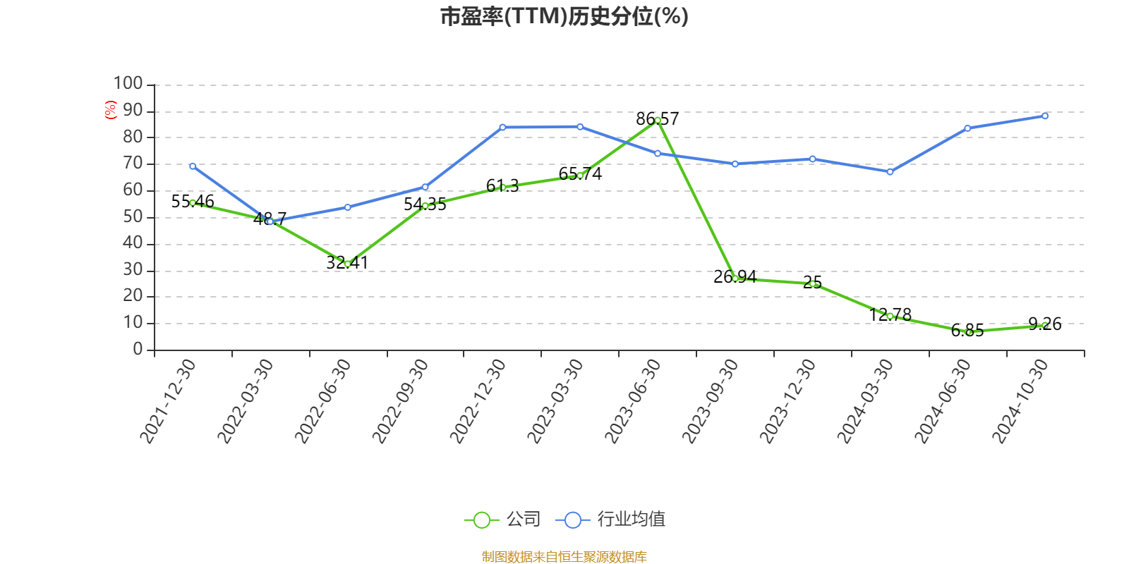 市盈率、市净率为负时,不显示当期分位数,会导致折线图中断。