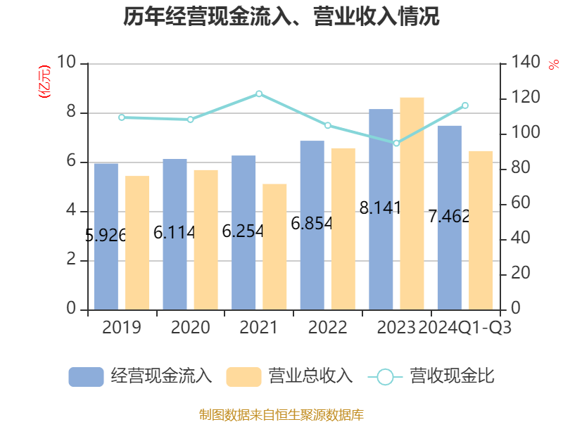 2024年前三季度,公司流动比率为9.28,速动比率为9.03。