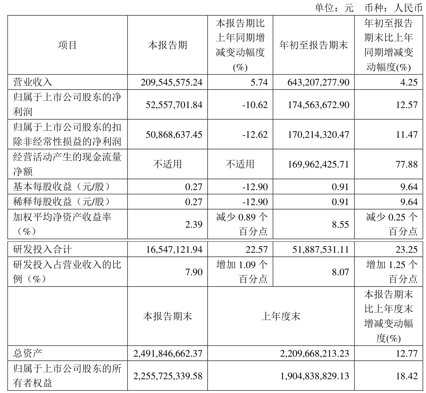 中证智能财讯吉贝尔(688566)10月31日披露2024年第三季度报告。前三季度公司实现营业收入6.43亿元,同比增长4.25%;归母净利润1.75亿元,同比增长12.57%;扣非净利润1.7亿元,同比增长11.47%;经营活动产生的现金流量净额为1.7亿元,同比增长77.88%;报告期内,吉贝尔基本每股收益为0.91元,加权平均净资产收益率为8.55%。公司2024年前三季度分配预案为:拟向全体股东每10股派现2.6元(含税)。