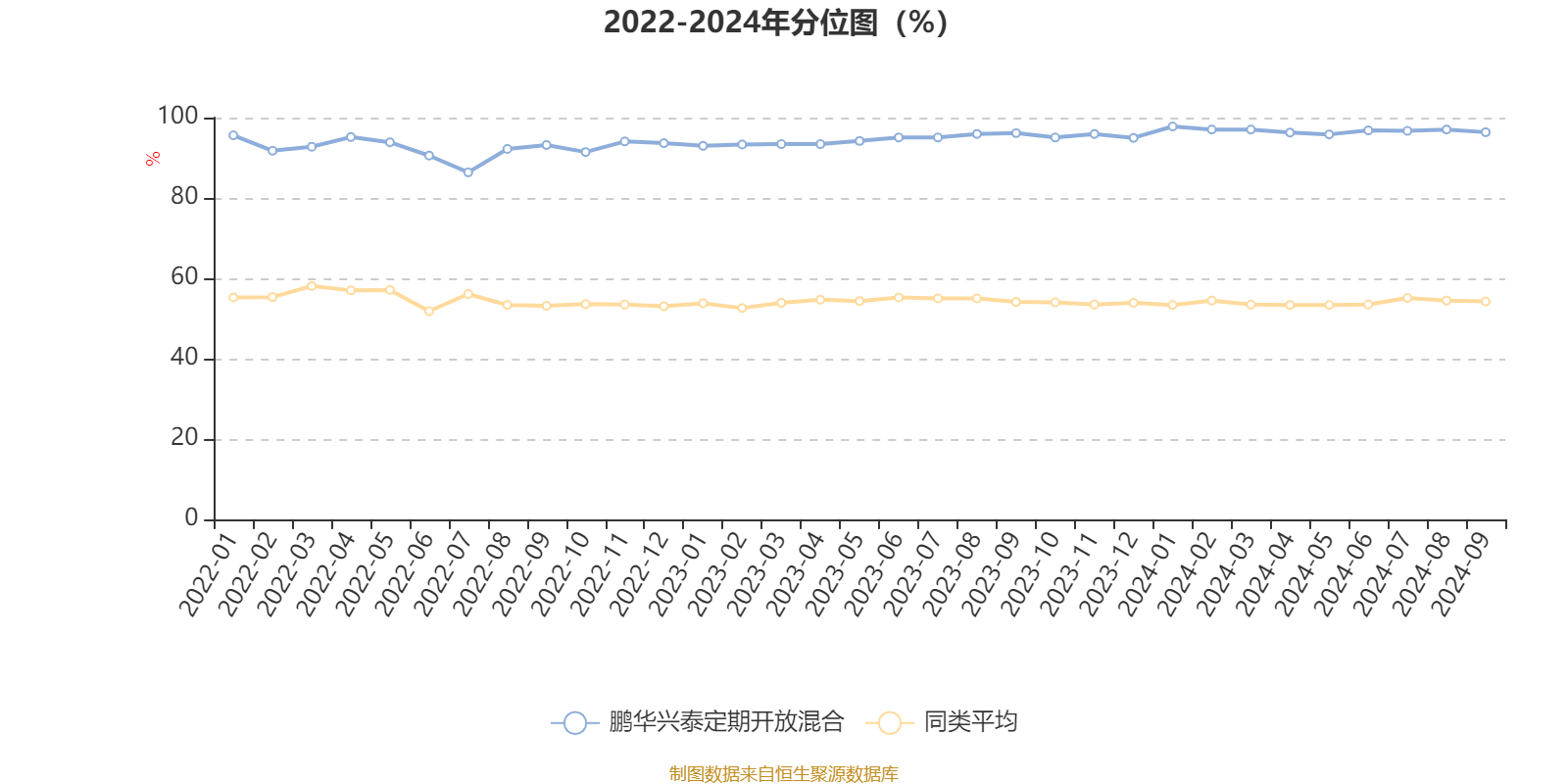 通过所选区间该基金净值增长率分位图,可以观察该基金与同类基金业绩比较情况。图为坐标原点到区间内某时点的净值增长率在同类基金中的分位数。