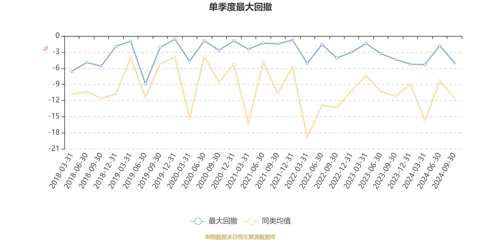 截至10月29日,基金近三年最大回撤为13.02%,同类可比基金排名891/896。其中,单季度最大回撤出现在2019年二季度,为8.91%。
