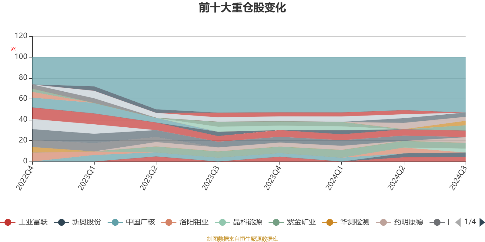 截至2024年三季度末,基金十大重仓股分别是中兴通讯、药明康德、紫金矿业、丽珠集团、新奥股份、工业富联、阳光电源、鹏鼎控股、宁德时代、晶科能源。