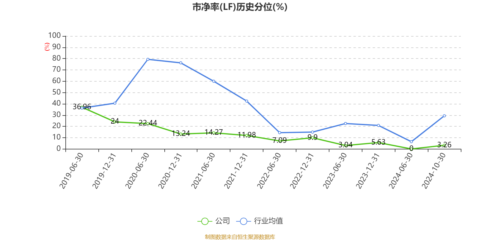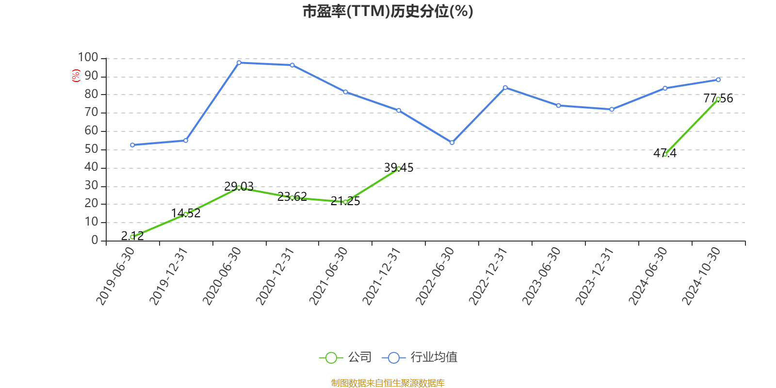 市盈率、市净率为负时,不显示当期分位数,会导致折线图中断。