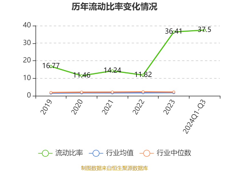 2024年前三季度,公司流动比率为37.5,速动比率为35.2。