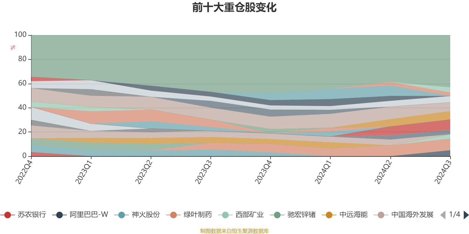 该基金持股集中度较高。截至2024年三季度末,基金十大重仓股分别是绿叶制药、零跑汽车、中国宏桥、立华股份、越秀地产、阿里巴巴-W、牧原股份、西部矿业、湖北宜化、华夏航空。