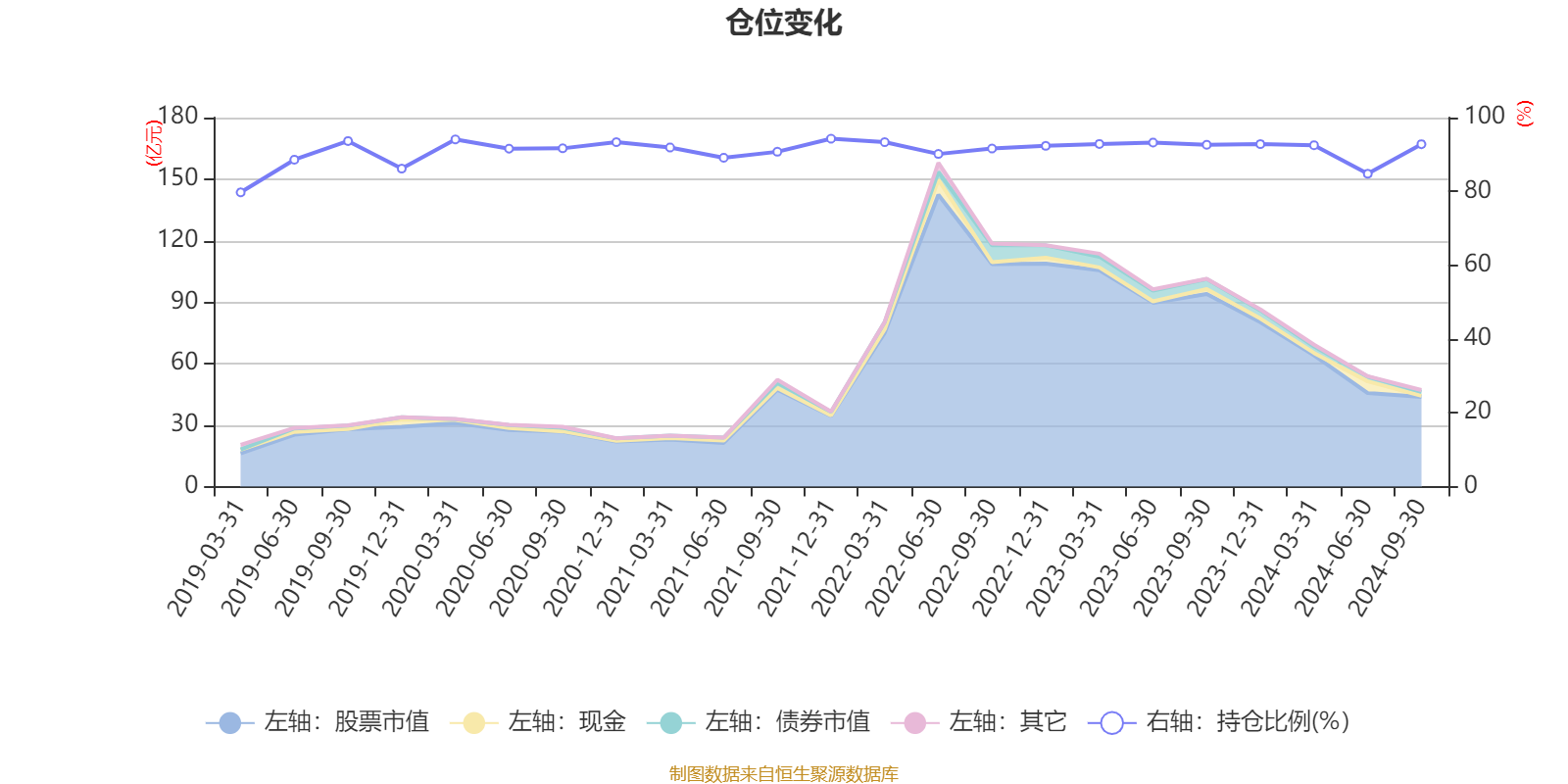 据定期报告数据统计,近三年平均股票仓位为91.94%,同类平均为86.07%。2021年末基金达到94.28%的最高仓位,2019年一季度末最低,为79.73%。