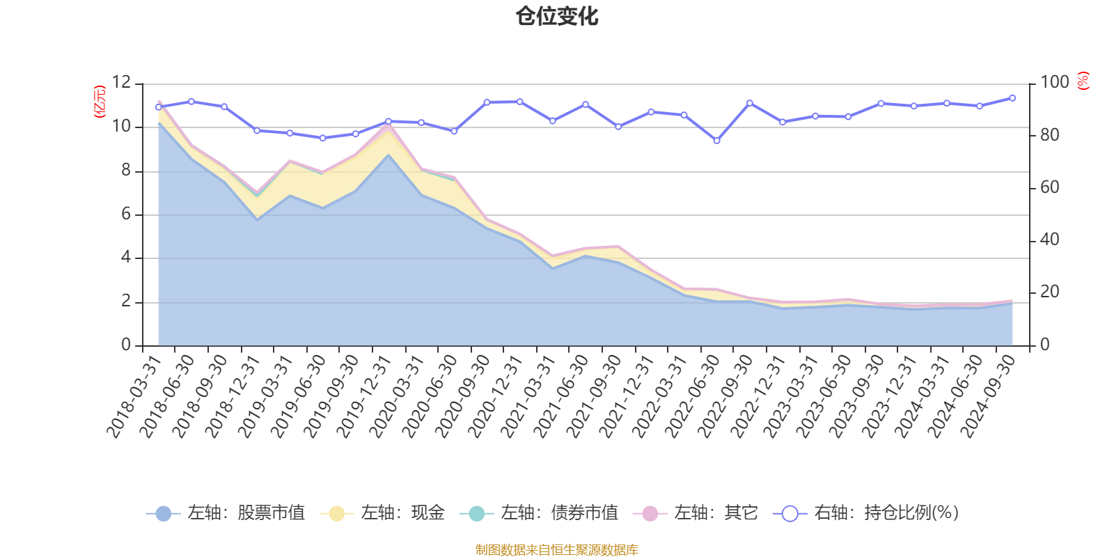 据定期报告数据统计,近三年平均股票仓位为89.21%,同类平均为79.68%。2024年三季度末基金达到94.49%的最高仓位,2022年上半年末最低,为78.22%。