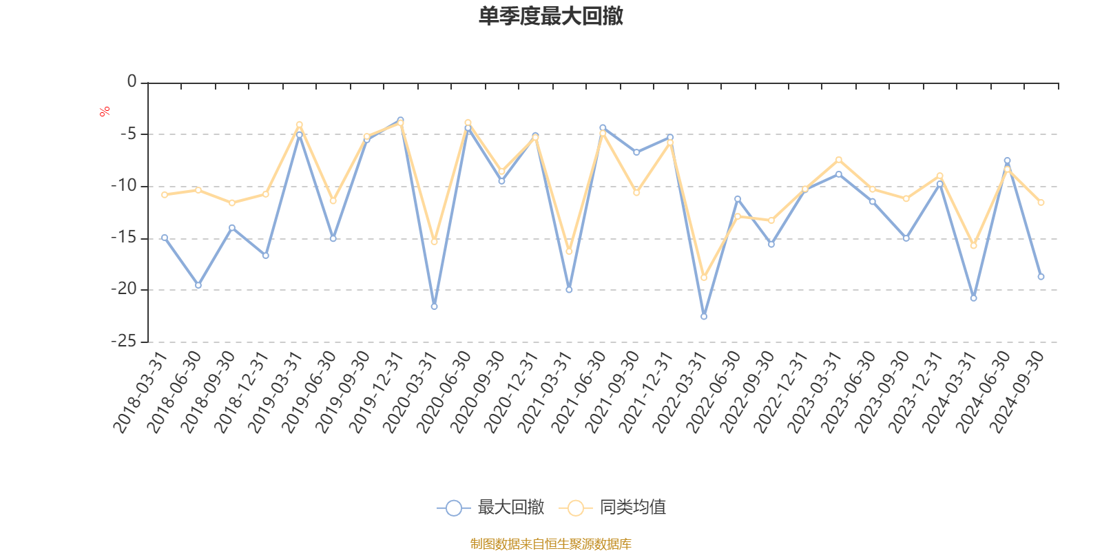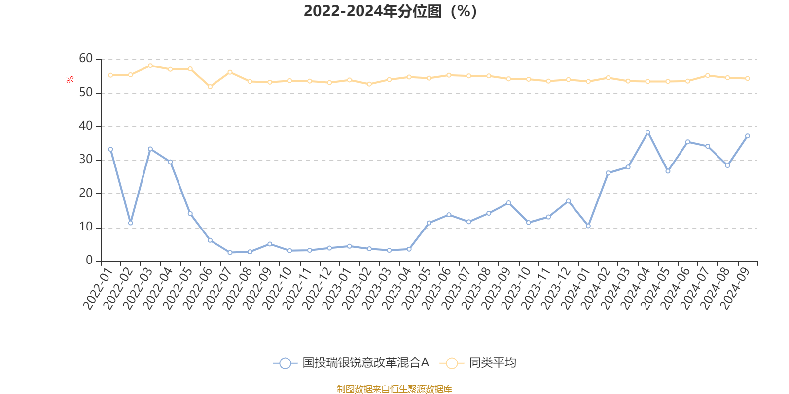 通过所选区间该基金净值增长率分位图,可以观察该基金与同类基金业绩比较情况。图为坐标原点到区间内某时点的净值增长率在同类基金中的分位数。