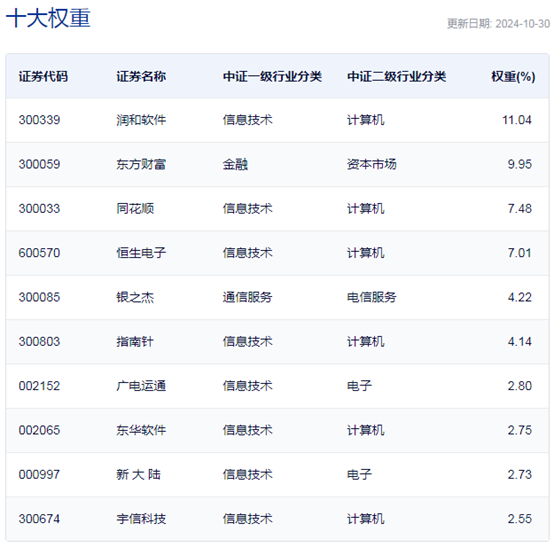 中证金融科技主题指数主要权重股
