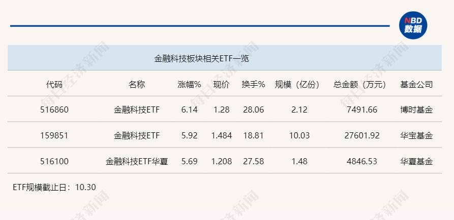 (原标题:行业ETF风向标丨牛市“旗手”重拾升势,三只金融科技ETF半日涨幅超5%)