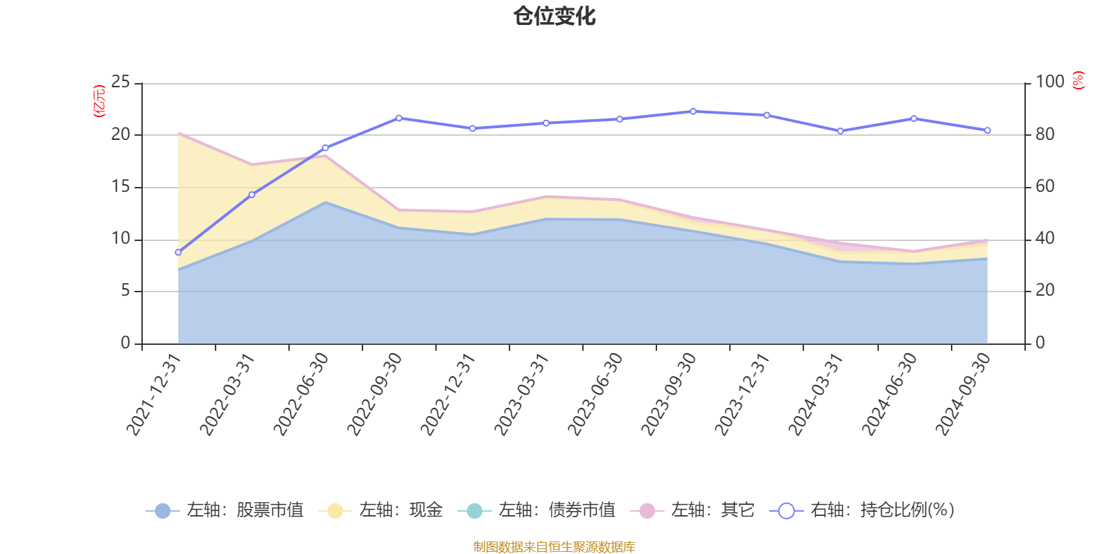 据定期报告数据统计,近三年平均股票仓位为77.86%,同类平均为85.67%。2023年三季度末基金达到89.19%的最高仓位,2021年末最低,为35.1%。