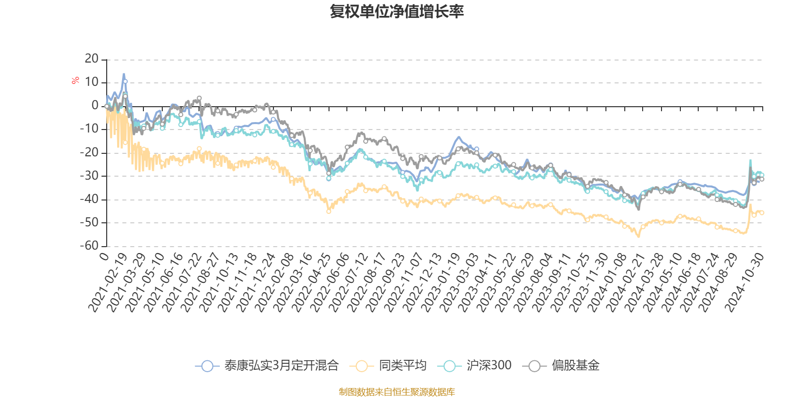 截至10月25日,泰康弘实3月定开混合近三个月复权单位净值增长率为3.73%,位于同类可比基金127/135;近半年复权单位净值增长率为1.79%,位于同类可比基金91/135;近一年复权单位净值增长率为5.45%,位于同类可比基金53/135;近三年复权单位净值增长率为-25.81%,位于同类可比基金59/123。