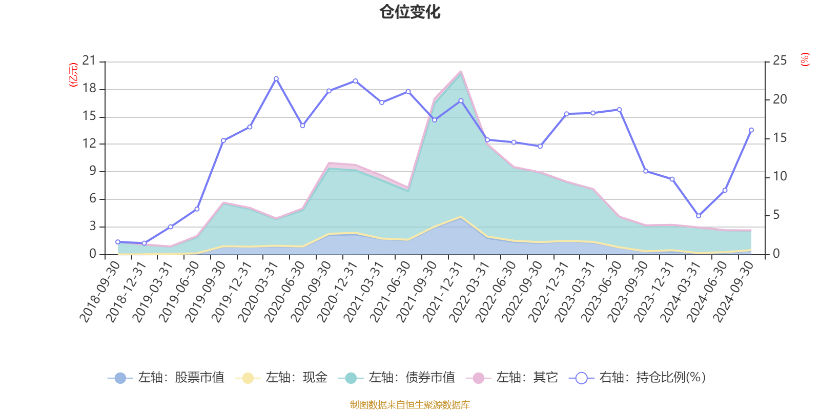据定期报告数据统计,近三年平均股票仓位为14.05%,同类平均为18.66%。2020年一季度末基金达到22.78%的最高仓位,2018年末最低,为1.46%。