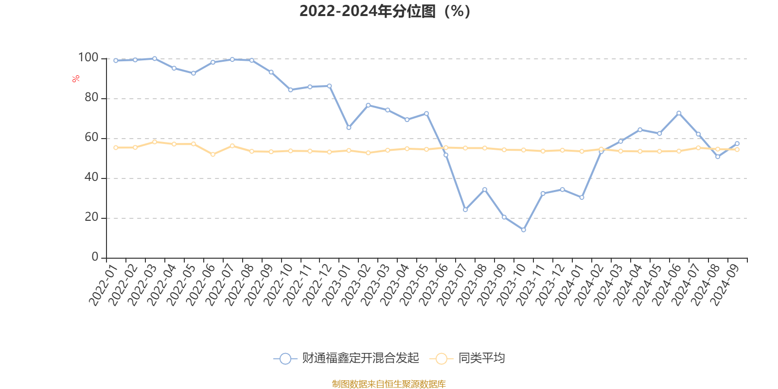通过所选区间该基金净值增长率分位图,可以观察该基金与同类基金业绩比较情况。图为坐标原点到区间内某时点的净值增长率在同类基金中的分位数。