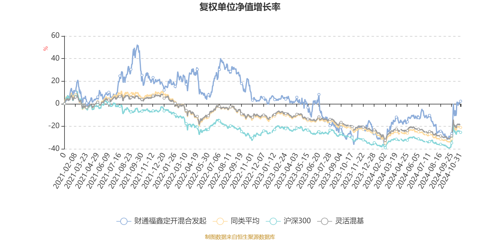 截至10月31日,财通福鑫定开混合发起近三个月复权单位净值增长率为25.65%,位于同类可比基金27/920;近半年复权单位净值增长率为16.36%,位于同类可比基金78/920;近一年复权单位净值增长率为49.92%,位于同类可比基金3/920;近三年复权单位净值增长率为-17.87%,位于同类可比基金288/892。