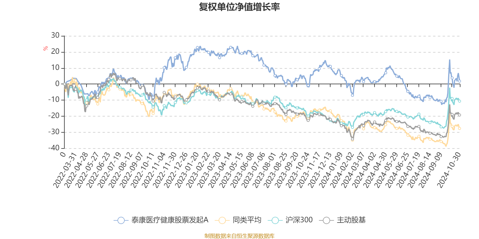 截至10月30日,泰康医疗健康股票发起A近三个月复权单位净值增长率为14.38%,位于同类可比基金22/54;近半年复权单位净值增长率为-4.84%,位于同类可比基金39/54;近一年复权单位净值增长率为-4.01%,位于同类可比基金4/51。
