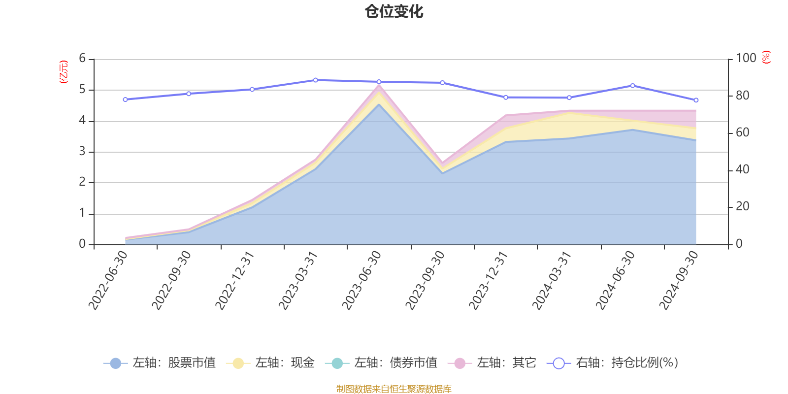 据定期报告数据统计,成立以来平均股票仓位为82.91%,同类平均为87.88%。2023年一季度末基金达到88.68%的最高仓位,2024年三季度末最低,为77.86%。